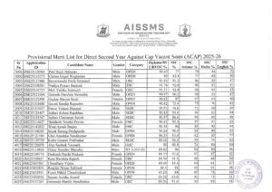 DSE Against Cap Vacant Seats Provisional Merit List 2025-26