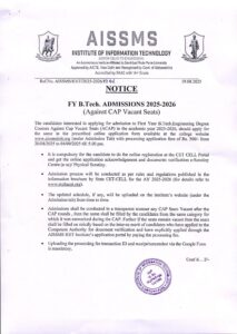 FY.B.Tech. Against Cap Vacant Seats Nottice 2025-26
